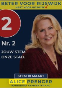 Kandidaat nummer 2: Ik ben Alice Prenger. Een geborgen en getogen Rijswijkse. Fractievoorzitter van Beter voor Rijswijk en verpleegkundige van beroep.