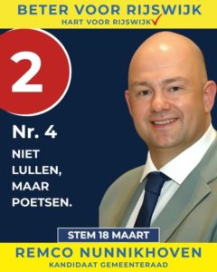 Ik roep iedereen op om 18 maart te gaan stemmen op onze mooie partij Beter voor Rijswijk.